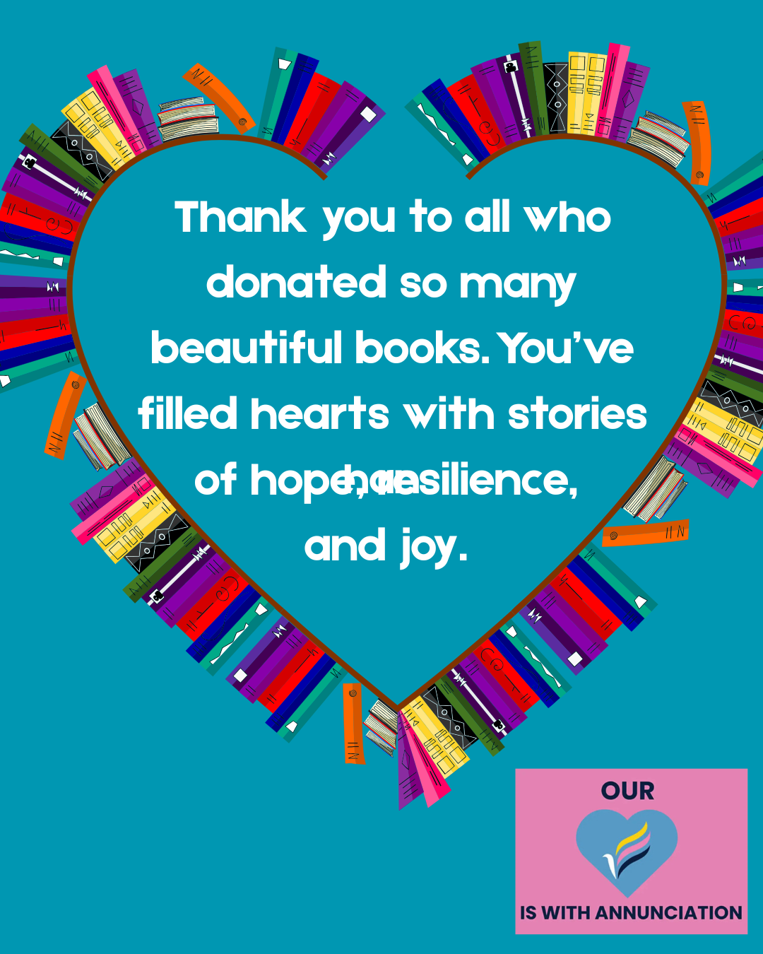 We are so grateful for the many books that have been donated to bring comfort and joy to the students and families of Annunciation. Your kindness has filled shelves and hearts.